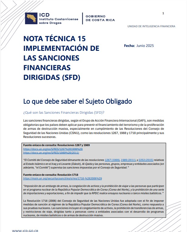 NOTA TÉCNICA 15 IMPLEMENTACIÓN DE LAS SANCIONES FINANCIERAS DIRIGIDAS (SFD)